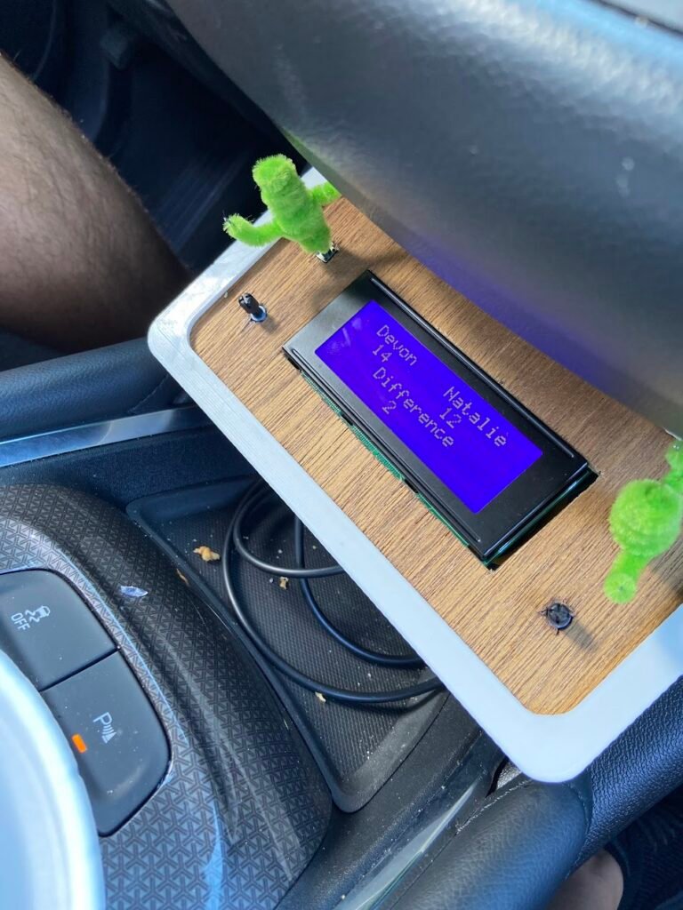As a way to keep score for the “Slug Bug Game”, I made a score counting device (the wood one). I later upgraded it to be much smaller, have a high resolution screen and tactile switches, utilize an ESP-32 and run for days on a single charge of the built in battery. I have had this smaller version working non-stop in my car for years without any issues.