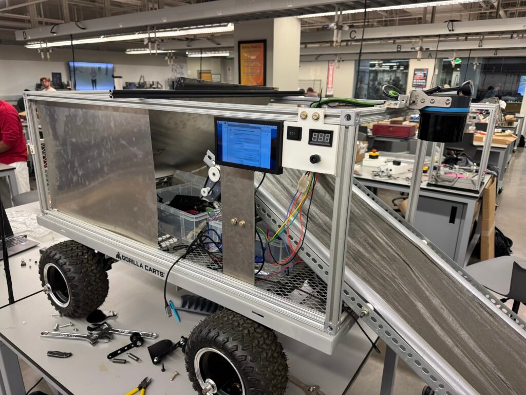 The electrical system included a built in control panel and screen that allowed for easier programming and voltage monitoring. The conveyor belt could raise seaweed to collect it in the back. The batteries were able to last the entirety of our hours of testing, driving and programming the robot a single charge, and the robot could carry over 150 lbs. of weight without a noticeable drop in performance.